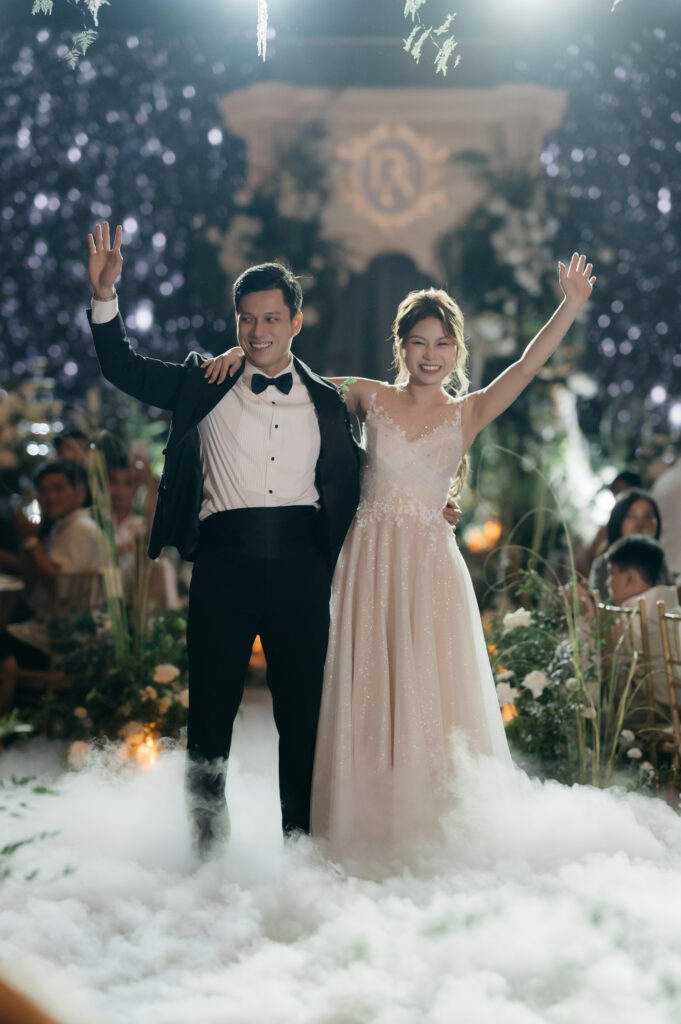 Không chỉ dừng lại ở mong muốn, Dustin và Krystal đều có ngoại hình vô cùng phù hợp với hình tượng hoàng tử và công chúa. Cả hai thật sự là mảnh ghép hoàn hảo nhất của đối phương. Dưới ánh đèn lung linh, làn khói ảo diệu, điệu nhảy first dance của cặp đôi tự như một thước phim mỹ miều khiến tất cả mọi người đều choáng ngợp!